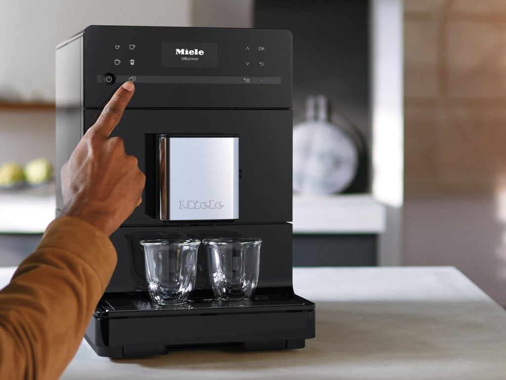 An update to the popular CM5300 series, the CM5310 Silence improves on the original with a redesigned burr and redesigned ground path for quieter grinding with every shot. Additionally, Miele has added dedicated coffee pot functionality to make brewing for friends and family even more effortless. There are many innovative features inside, including 10+ programmable drink options, an automated cleaning system and eco-modes.