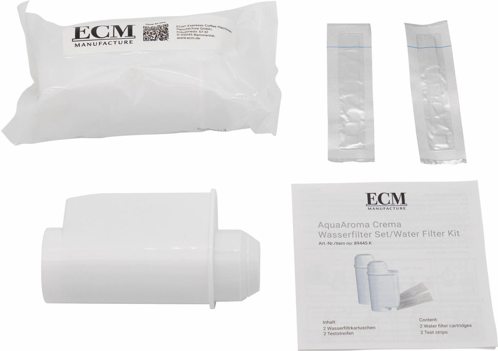 The ECM AquaAroma Crema Water Filter System is designed to protect your espresso machine while enhancing beverage quality. Each pack includes two premium filter cartridges that fit seamlessly into your machine’s water tank, helping to prevent limescale buildup that can shorten your machine’s lifespan and affect performance.
