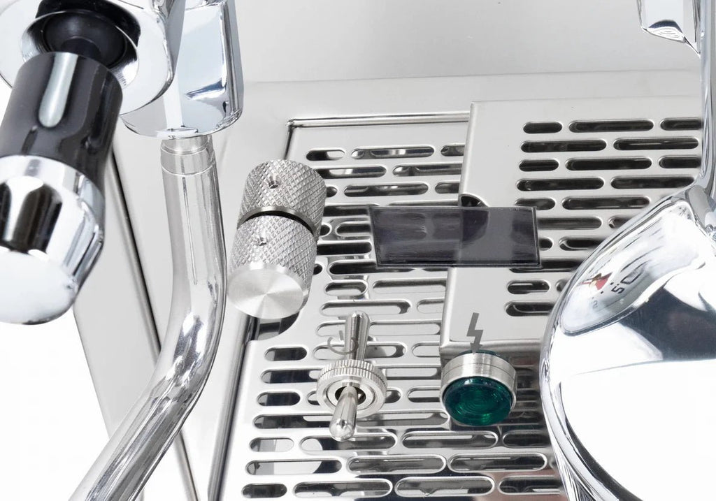 Features an intuitive rotary dial navigation system paired with a sleek OLED display for easy temperature control, shot timing, and machine status monitoring