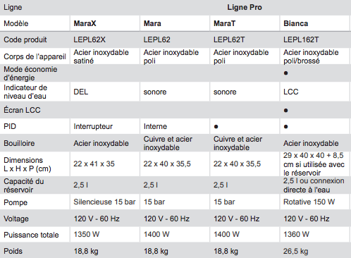 • Stand-by Mode: Shuts off the steam and coffee boilers after 30 minutes, in compliance with European standards.